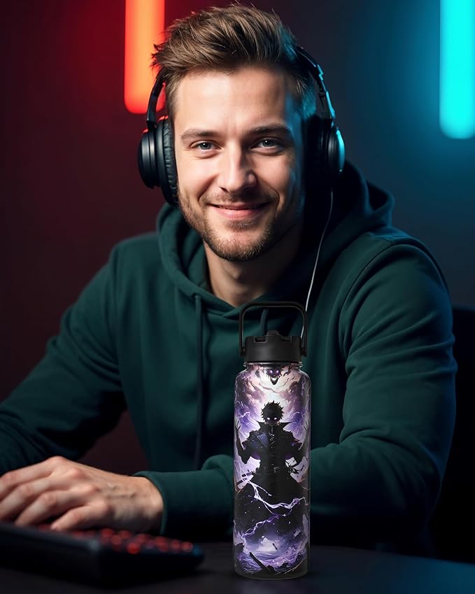 - Premium Stainless Steel Build: Crafted from food-grade 18/8 stainless steel, this flask is rust-free, BPA-free, and finished with a matte powder coating for a solid grip and sleek style. A bold design for men, adults, and serious gamers who want a cool, high-capacity canteen.