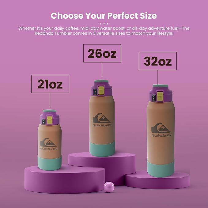 Quiksilver Redondo 26oz Double Wall Stainless Steel Water Bottle, Reusable Sports Bottle with Leak-Proof Lid, Non-Slip Rubber Base, Carrier Handle, insulated Tumblers, 24H Hot & Cold Beverage