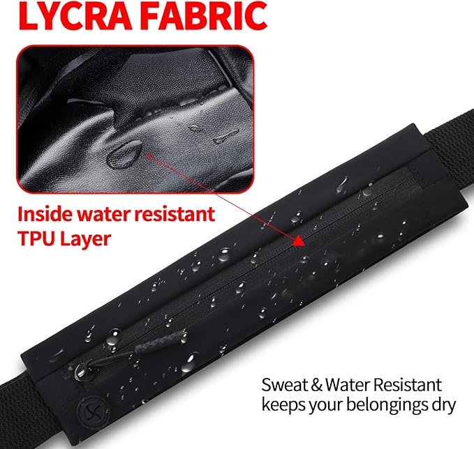 - WATER RESISTANT: The lining of the fanny pack is made of high quality water-resistant material protect the valuables from sweat and sudden rain. This running cell phone holder can only be used for water splashing, can't soak in the water. However, it can be safely washed in water.