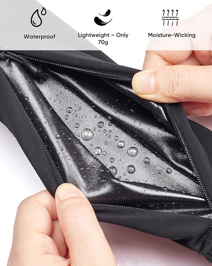 - Breathable & Water-Resistant – This unisex running fanny pack is crafted from premium breathable fabric that wicks away moisture and dries quickly, keeping you cool and comfortable. Weighing just 2.5 oz, it won't slow you down. All pockets are lined with waterproof material to block out moisture and rain, keeping your essentials dry. Reflective logo and strip on the front and back increase safety in low-visibility scenarios. This reflective running bag makes every run farther, safer, and more comfortable.