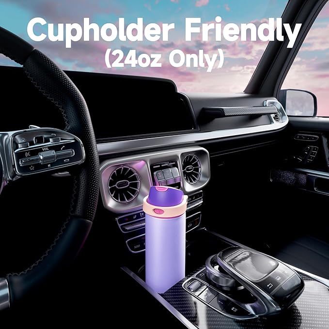 - Protective Base, Protect Your Bottle: A built-in silicone pad absorbs damage and prevents dents and scratches, keeping the bottle's bottom safe; plus, the 24 oz travel water bottle fits most car cup holders; great for road trips