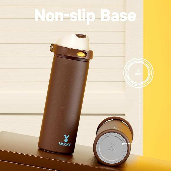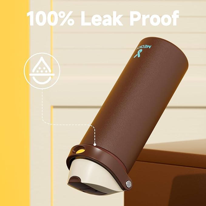 24 oz Insulated Water Bottle with Straw: Meoky Stainless Steel Metal Water Bottle with 2-in-1 Lid - Leak Proof, Cold for 24 Hours, Fits in Car Cup Holder, BPA-Free for Travel Sports Gym, Cocoa