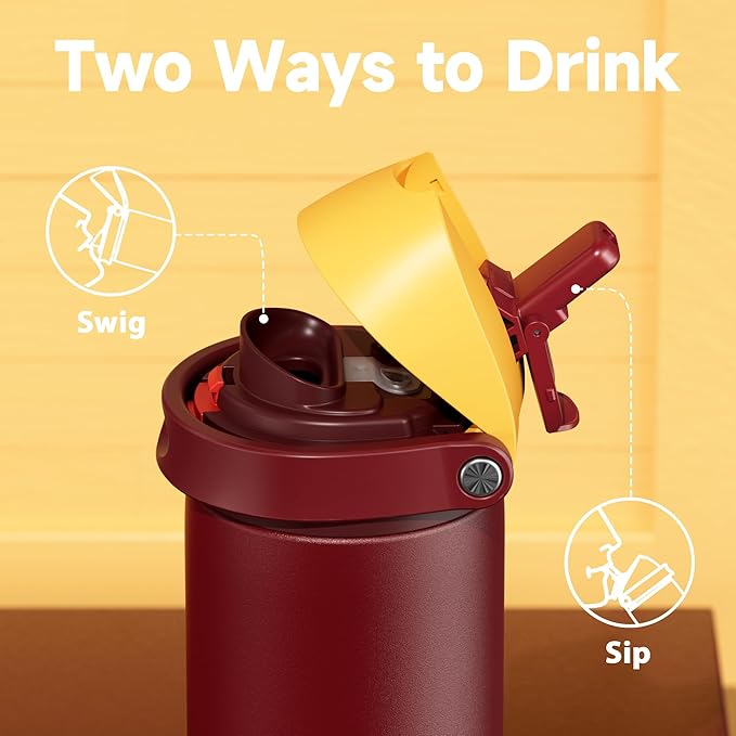 - 2-in-1 Lid, Sip or Swig: Features a flip straw for easy sipping and a push-button spout for quick swigging; stay hydrated your way — at the gym, on the go, and beyond