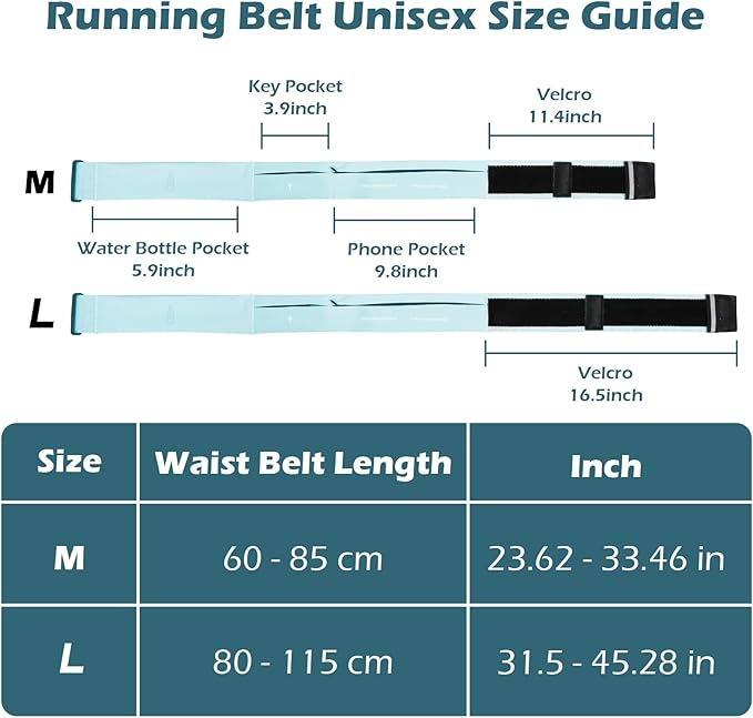 Lsnisni Slim Running Belt for Men and Women, Running Waist Pack with Water Bottle & Towel, Multi Pocket Fanny Pack - Phone Holder, Adjustable for Running, Climbing - Medium - Cyan