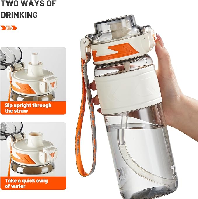 - WATER BOTTLES WITH STRAW: This sports water bottle features food-grade material straw, making it easy for you to grip and sip via the straw lid. One removable straw allows you to enjoy spill-proof sipping or fast water flow. It can also be used without straw,a dual-purpose water bottle.