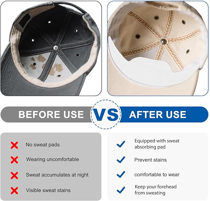 - Protects and Extends Hat Life: These disposable sweat liners for baseball caps prevent yellow stains, makeup marks and odor from damaging your hats, keeping your favorite caps fresh, tidy and looking new for longer