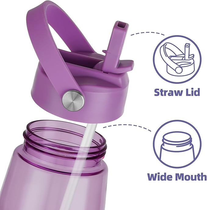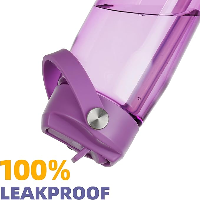 OLDLEY 32 oz Water Bottle with Straw, Leakproof Sports Water Bottle with Carry Strap, BPA-Free Large Water Bottles for Home,Travel, School, Outdoors, Gym, Tritan,Dark Purple