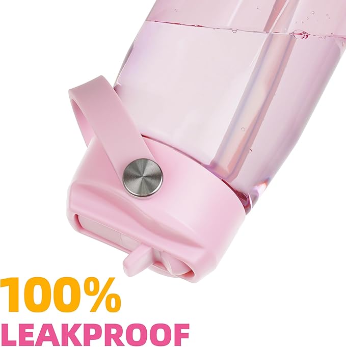 OLDLEY 32 oz Water Bottle with Straw, Leakproof Sports Water Bottle with Carry Strap, BPA-Free Large Water Bottles for Home,Travel, School, Outdoors, Gym, Tritan,Pink