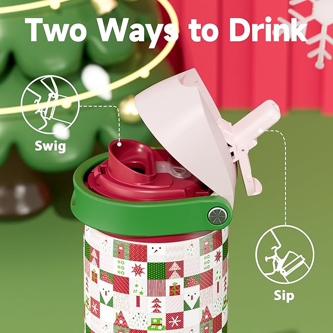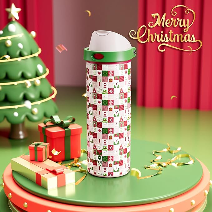 24 oz Insulated Water Bottle for Christmas: Meoky Stainless Steel Xmas Water Bottle with 2-in-1 Straw and Spout Lid - Leak Proof, Fits in Car Cup Holder, Christmas Gifts for Women Men, Santa Wishes