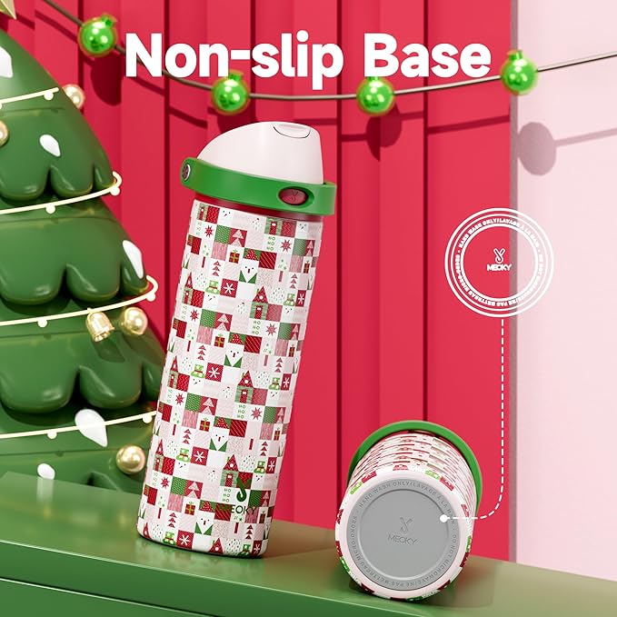 - 24 Hours Cold, Always Refreshing: Double-wall vacuum insulation keeps drinks cold for up to 24 hours, while making the Meoky Christmas mug sweat-free