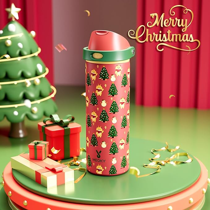 24 oz Christmas Insulated Water Bottle: Meoky Stainless Steel Water Bottle with Straw and Spout Lid - Leak Proof, Cold for 24 Hours, Fits in Car Cup Holder, Christmas Gifts for Women Men, Santa Deer