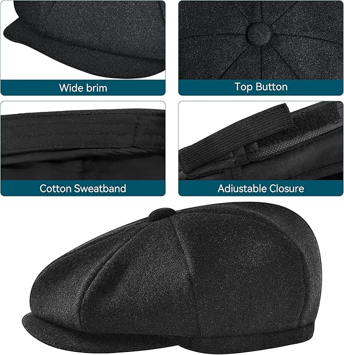 • 【High-quality Wool Blend Material】This newsboy hat for men are made of 50% Wool & 50% Viscose and they are more breathable and comfortable.This newboys hat will not cause any discomfort for your wearing.