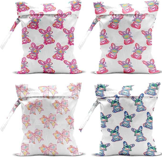 4 Pack Cute Bunny Easter Coquette Easter Bow Rabbit Wet Bag Waterproof Reusable Wet Dry Bag for Swimsuit Travel Beach Pool Yoga Gift for Women Sister Birthday Christmas Mothers Day Easter Party