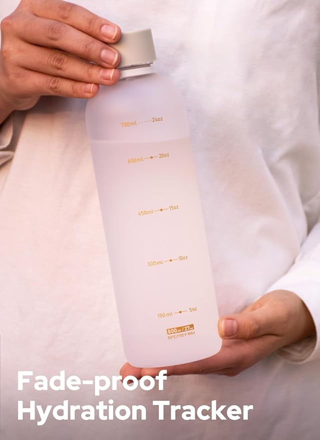 Opard Slim Water Bottle 27oz, Dishwasher Safe Plastic Water Bottle BPA-Free, Leakproof Screw Top, Cream White, Reusable for Travel School Sport Gym Hiking
