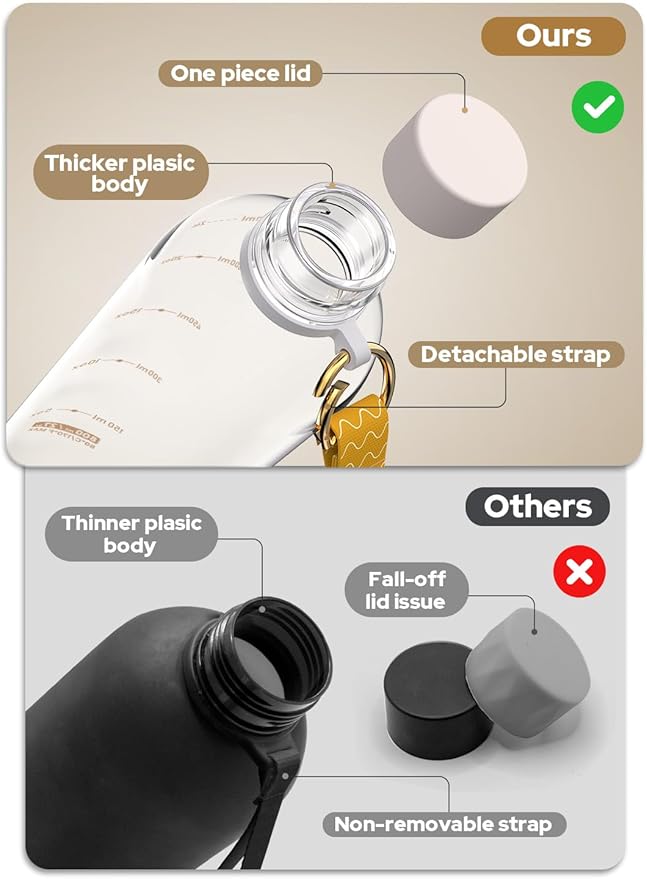 - Truly Top-Rack Dishwasher Safe -- The strap is detachable for easier cleaning. We tested multiple detergents and dishwasher modes, and the bottle passed every single trial—truly dishwasher safe!