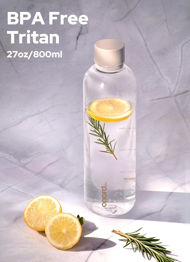 Opard Slim Water Bottle 27oz, Dishwasher Safe Plastic Water Bottle BPA-Free, Leakproof Screw Top, Clear Cream, Reusable for Travel School Sport Gym Hiking