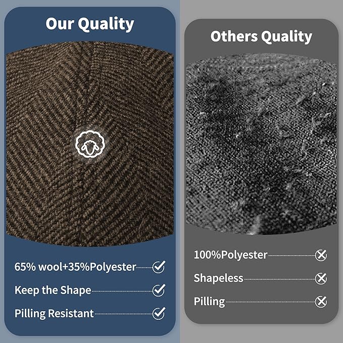 - Premium Wool Material: Crafted from the finest wool, the KUJUHA newsboy cap offers a luxurious, thick, and durable experience, ensuring comfort and warmth in winter