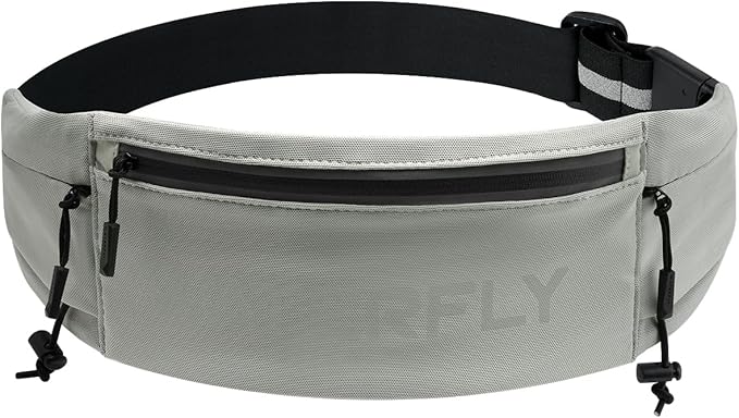 WATERFLY Running Belt Fanny Pack: Breathable 3 Pocket Waist Bag for Men Women Workout Exercise Fitness Phone Holder Fits All Phones - Runner Marathon Jogging Race Belt with Bib Clip Gray