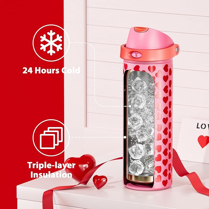 - Protective Base, Protect Your Bottle: A built-in silicone pad absorbs damage and prevents dents and scratches, keeping the bottle's bottom safe; plus, this valentines tumbler fits most car cup holders; great for road trips