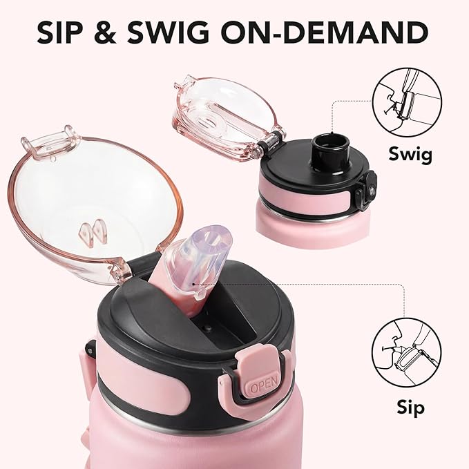 - Two Leakproof Lids & Straw Combo: Includes two BPA-free lids — one with a straw, one standard — both fully leakproof for on-the-go hydration; the 32 oz insulated water bottle is ideal for work, fitness, and sports.