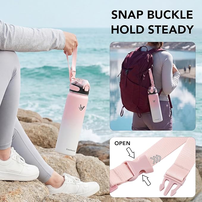 Enerbone 32 oz Insulated Water Bottle, 32oz 2 Lids (with Straw/No Straw), Stainless Steel Double Wall Flask for Hot & Cold Drinks, Leakproof Travel Bottle for Gym, Office, Hiking