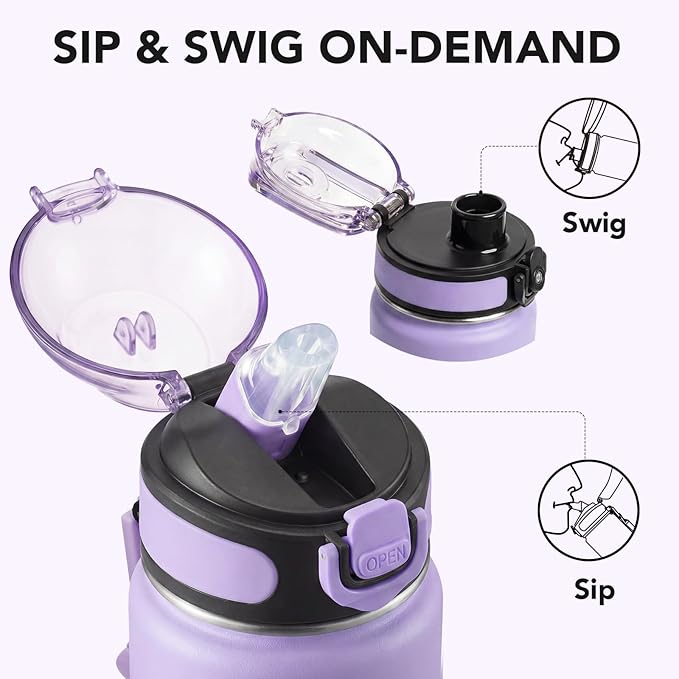 - Two Leakproof Lids & Straw Combo: Includes two BPA-free lids — one with a straw, one standard — both fully leakproof for on-the-go hydration; the 24 oz insulated water bottle is ideal for work, fitness, and sports.