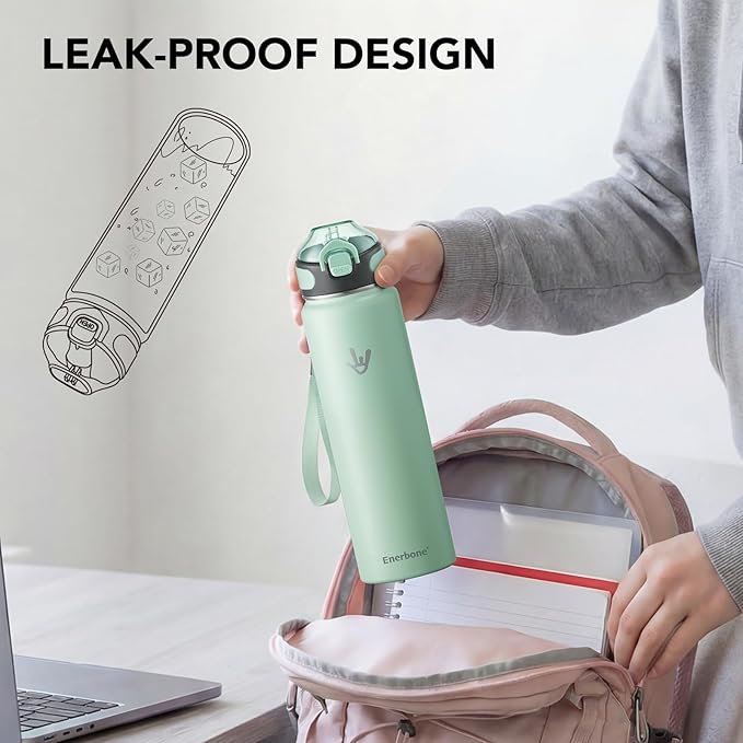 Enerbone 32 oz Insulated Water Bottle, 32oz 2 Lids (with Straw/No Straw), Stainless Steel Double Wall Flask for Hot & Cold Drinks, Leakproof Travel Bottle for Gym, Office, Hiking