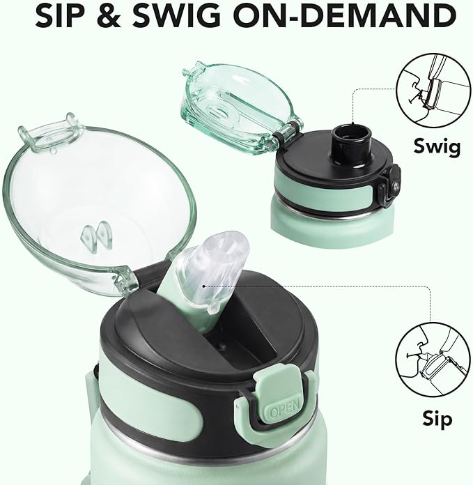 - Two Leakproof Lids & Straw Combo: Includes two BPA-free lids — one with a straw, one standard — both fully leakproof for on-the-go hydration; the 32 oz insulated water bottle is ideal for work, fitness, and sports.